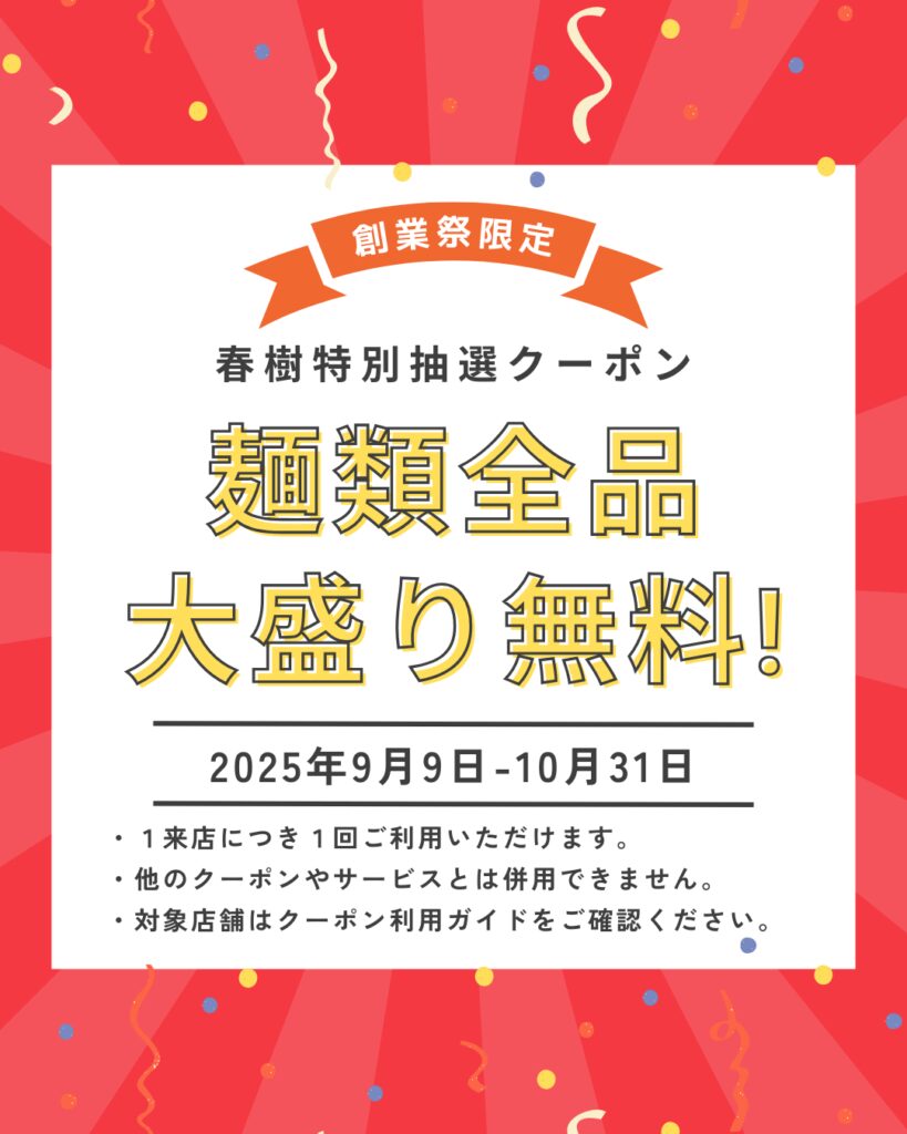 LINE抽選で【麺類大盛り無料クーポン】をプレゼント。