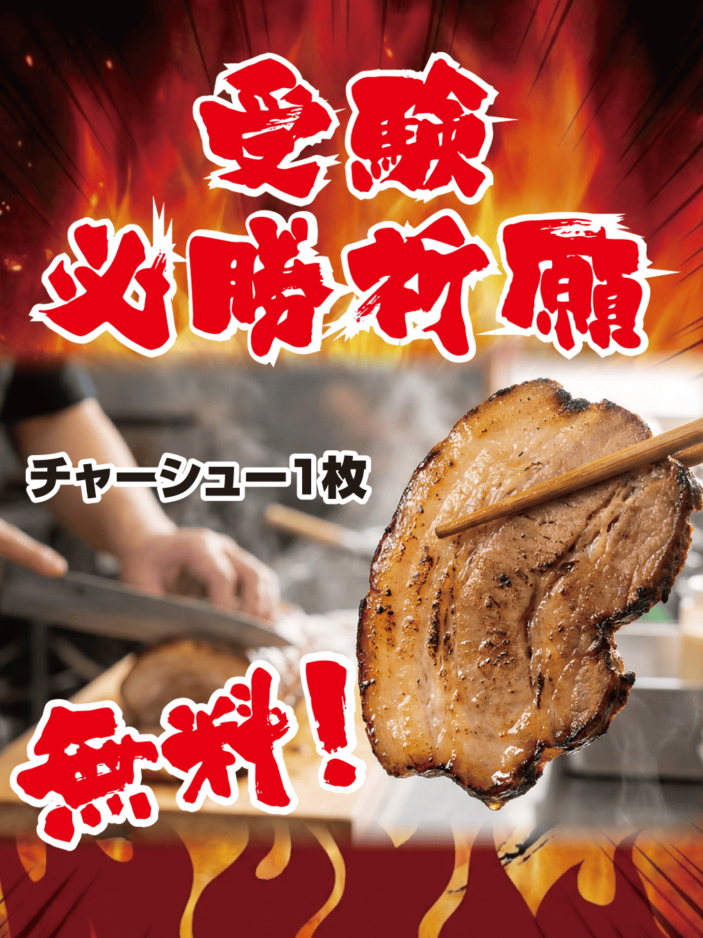 ・内容:学生証または受験票のご提示で「チャーシュー1枚」を無料サービス